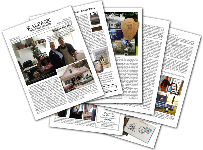 The Walpack Historical Society publishes a 8-page, quarterly newsletter for our membership which includes stories and articles relating to the area that was the town of Walpack. The newsletters are mailed only to the members as well as are available for visitors that attend our events. It is also posted to our website about a month after release for the public to view and download.